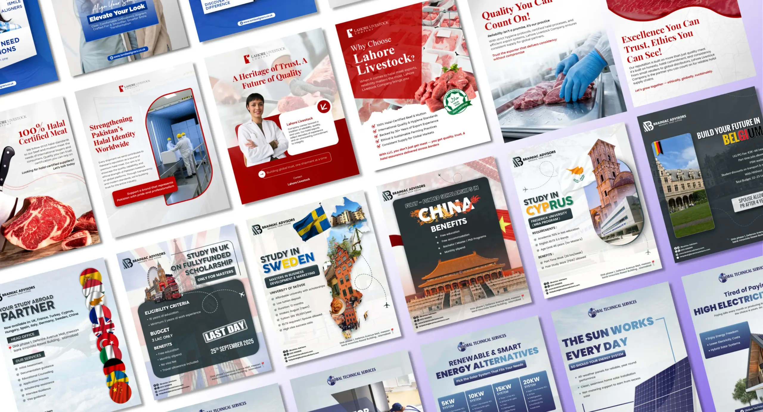 We create strong and consistent brand identities that help businesses stand out in Pakistan’s competitive digital market with creative visuals and impactful designs.